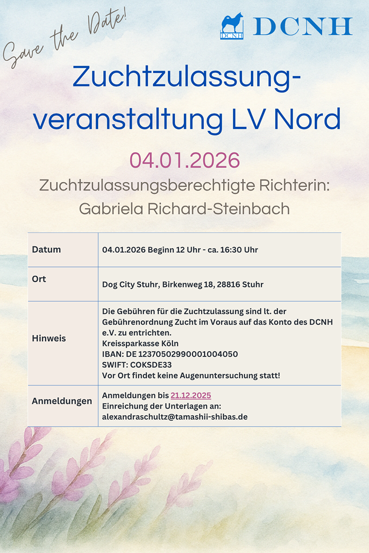 Der DCNH e.V - Landesverband Nord möchte Sie herzlich auf unseren Seiten begrüßen! aktualisiert am 20.07.2025